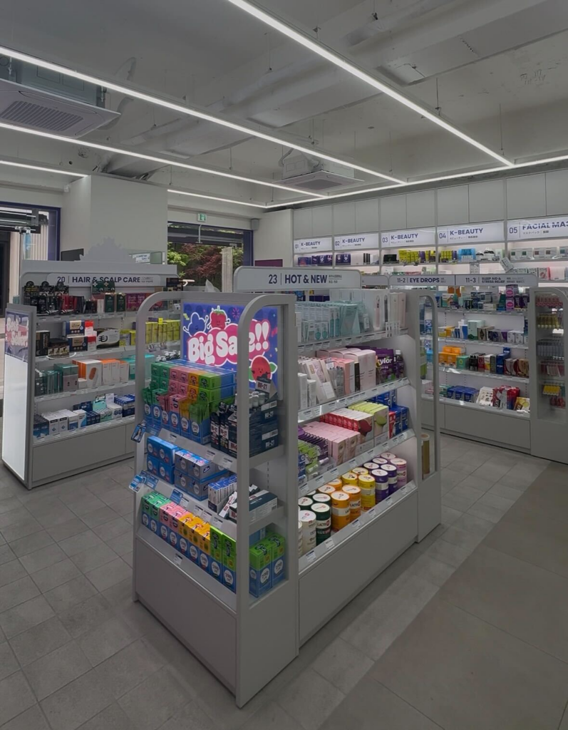 Located in the heart of Yeonmujang-gil (Seongsu’s trendiest street), VeryNew Pharmacy is not your typical drugstore. It is a 365-day open, tourist-friendly hub that offers: