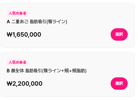 • 二重あご脂肪吸引:1,650,000ウォン〜