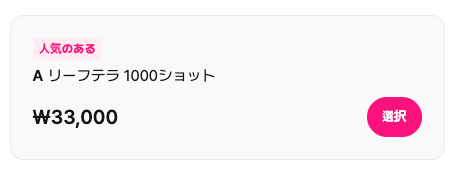 | 💡リーフテラ 1000ショット | ₩33,000 | 約3,630円 | 美白+トーンアップ/コスパ最強! |