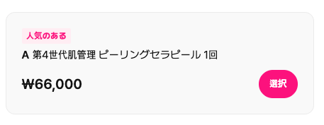 | 🧖♀️第4世代ピーリング:セラピール 1回 | ₩66,000 | 約7,260円 | ダウンタイムなしでつるん肌に |